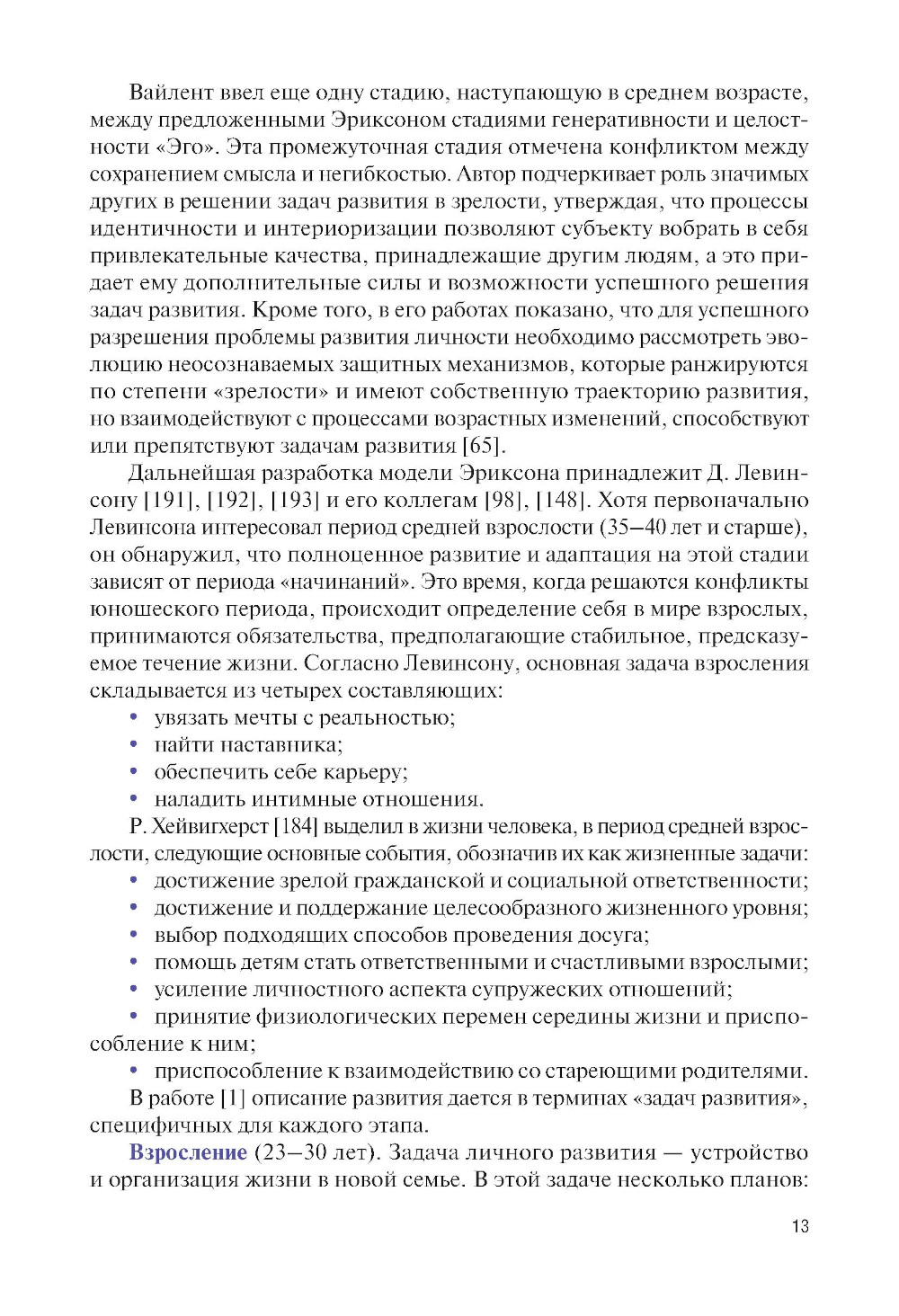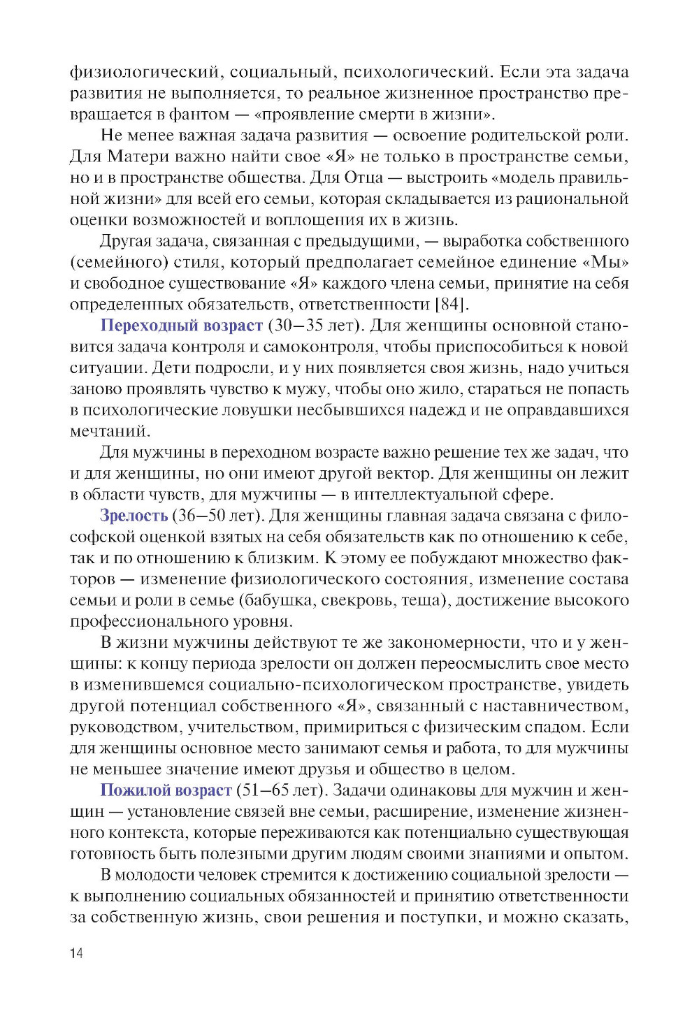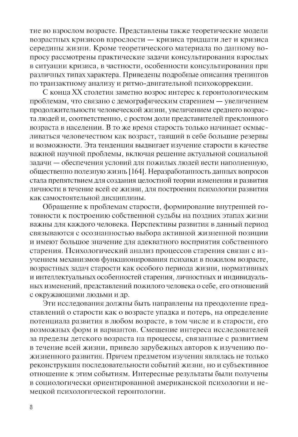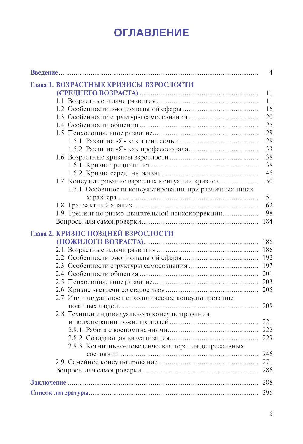 Подробно рассмотрены возрастные задачи развития, особенности эмоциональной сферы, особенности структуры самосознания, особенности общения и психосоциальное развитие во взрослом возрасте. Представлены теоретические модели возрастных кризисов взрослости - кризиса тридцати лет и кризиса середины жизни. Подробно рассмотрены возрастные задачи развития, особенности эмоциональной сферы, структуры самосознания, общения и психосоциального развития в пожилом возрасте. Представлены теоретические модели основного возрастного кризиса пожилого возраста - кризиса встречи со старостью. Кроме теоретического материала по данным вопросам рассмотрены практические задачи консультирования взрослых и пожилых людей в ситуации кризиса. Подробно описаны техники семейного консультирования. Соответствует ФГОС ВО последнего поколения. Для студентов бакалавриата, специалитета и магистратуры, обучающихся по направлениям подготовки 37.04.01 «Психология» и 37.05.01 «Клиническая психология».| Издательство | КноРус |