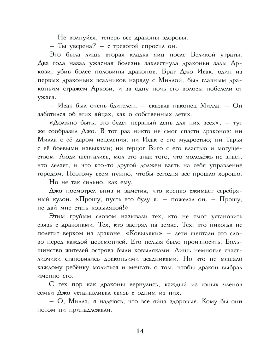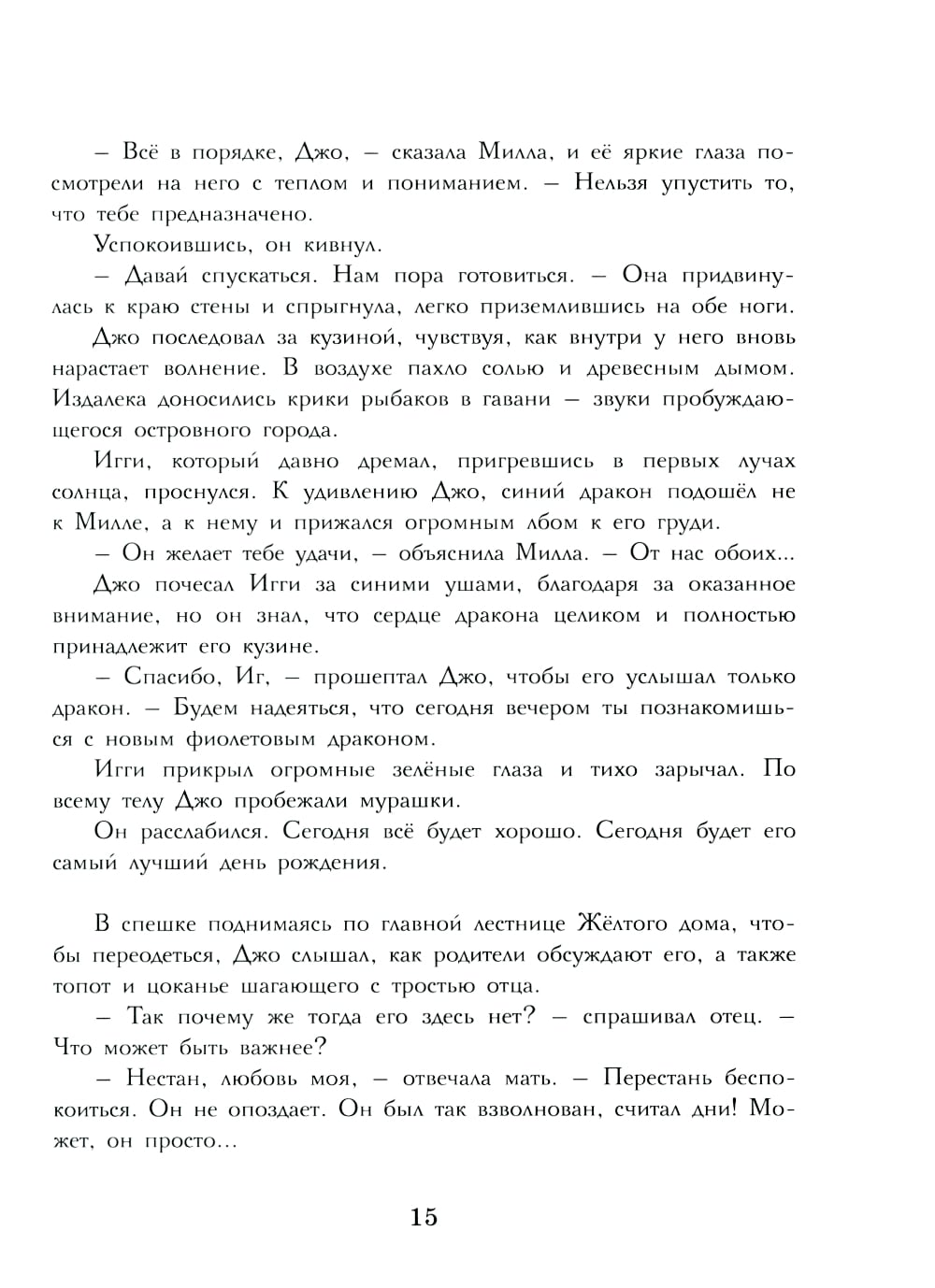 Продолжение бестселлера Лиз Флэнаган «Дочь дракона». Джо был уверен, что в день рождения обретёт своего дракона, но... С каким волнением и радостью Джо ждал своего дня рождения! Ведь в тот же день из яиц должны были появиться на свет драконы и выбрать своих будущих всадников. Джо был уверен, что один из этих драконов, фиолетовый, обязательно выберет его. А когда мечты юноши рухнули, он не смог сдержать свою ярость. Теперь, сломленный и ничтожный, противный самому себе, он должен скрываться, чтобы спасти от позора свою семью. Лишь потерявшая своего дракона Винтер сможет понять его боль. Но Джо пока не знает, что совсем скоро они найдут под землёй два странных яйца, и что, спасая остров от новых угроз, ему придётся проявить всё своё мужество. Для среднего школьного возраста.