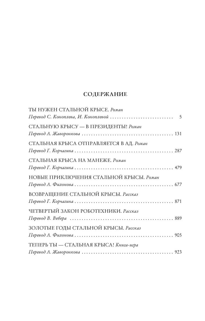 Цикл Гарри Гаррисона о Джиме ди Гризе, прозванном Стальной Крысой, по праву считается одним из лучших в творчестве прославленного фантаста. Герой цикла, великий плут и мошенник, умеет выходить сухим из воды практически в любой ситуации, какой бы безнадежной она ни показалась вначале, - и в любом уголке Вселенной, куда бы его ни забрасывала судьба. В безумной ли борьбе за президентское кресло, связанной со смертельным риском, на планете Параисо-Аки. Или в глубинах ада, куда Джим отправляется ради спасения любимой супруги. Ну а уж когда богатейший в Галактике человек предлагает фантастическое по сумме вознаграждение за некое опасное дело, тут уж сам Творец мира не уговорит его отказаться. Но, даже разбогатев и получив редкую для себя возможность уединиться вместе с семейством, Джим ди Гриз недолго пребывает в покое. Ведь он не кто-нибудь, а Стальная Крыса, человек из нержавеющей стали.| Издательство | Издательство АЗБУКА ООО |