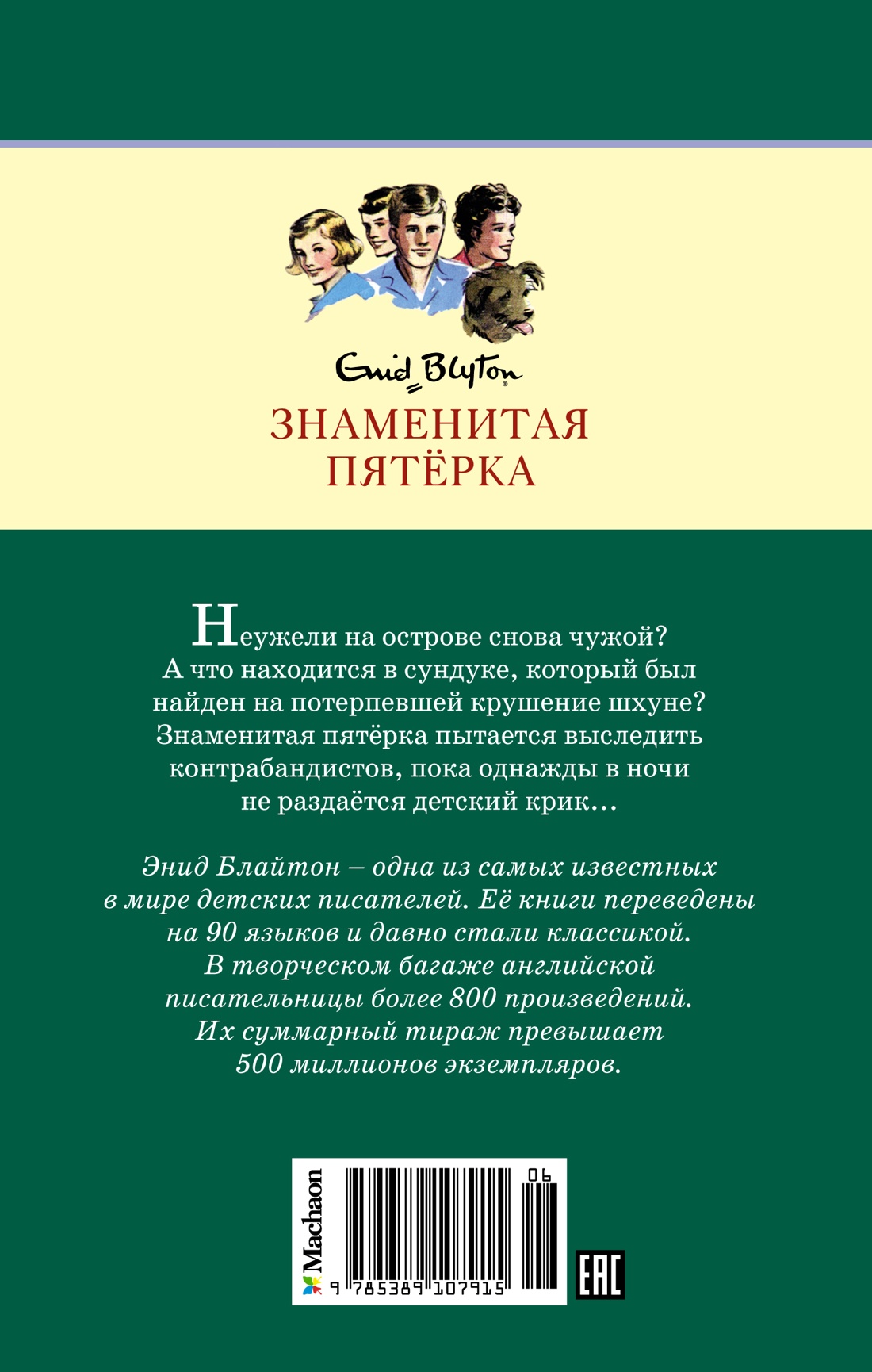Неужели на острове снова чужой? А что находится в сундуке, который был найден на потерпевшей крушение шхуне? Знаменитая пятёрка пытается выследить контрабандистов, пока однажды в ночи не раздастся детский крик...| Издательство | Махаон |