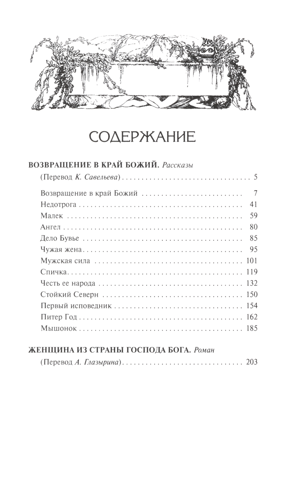 Писатель и поэт Джеймс Оливер Кервуд (1878-1927) известен нашим читателям главным образом как натуралист, писавший повести и рассказы о животных для детей. Между тем, он написал много романов, повестей и рассказов для взрослых, где воспел не только природу северных штатов США и Канады, но и людей, живших и трудившихся на американском Севере в XIX - начале XX века: трапперов, первопроходцев, офицеров Королевской конной полиции, моряков, изыскателей, лесорубов, индейцев и алеутов. В этом отношении его с полным правом можно назвать предшественником Джека Лондона. Тому подтверждение произведения вошедших в этот том сборник рассказов «Возвращение в край Божий» и роман «Женщина из страны Господа Бога».