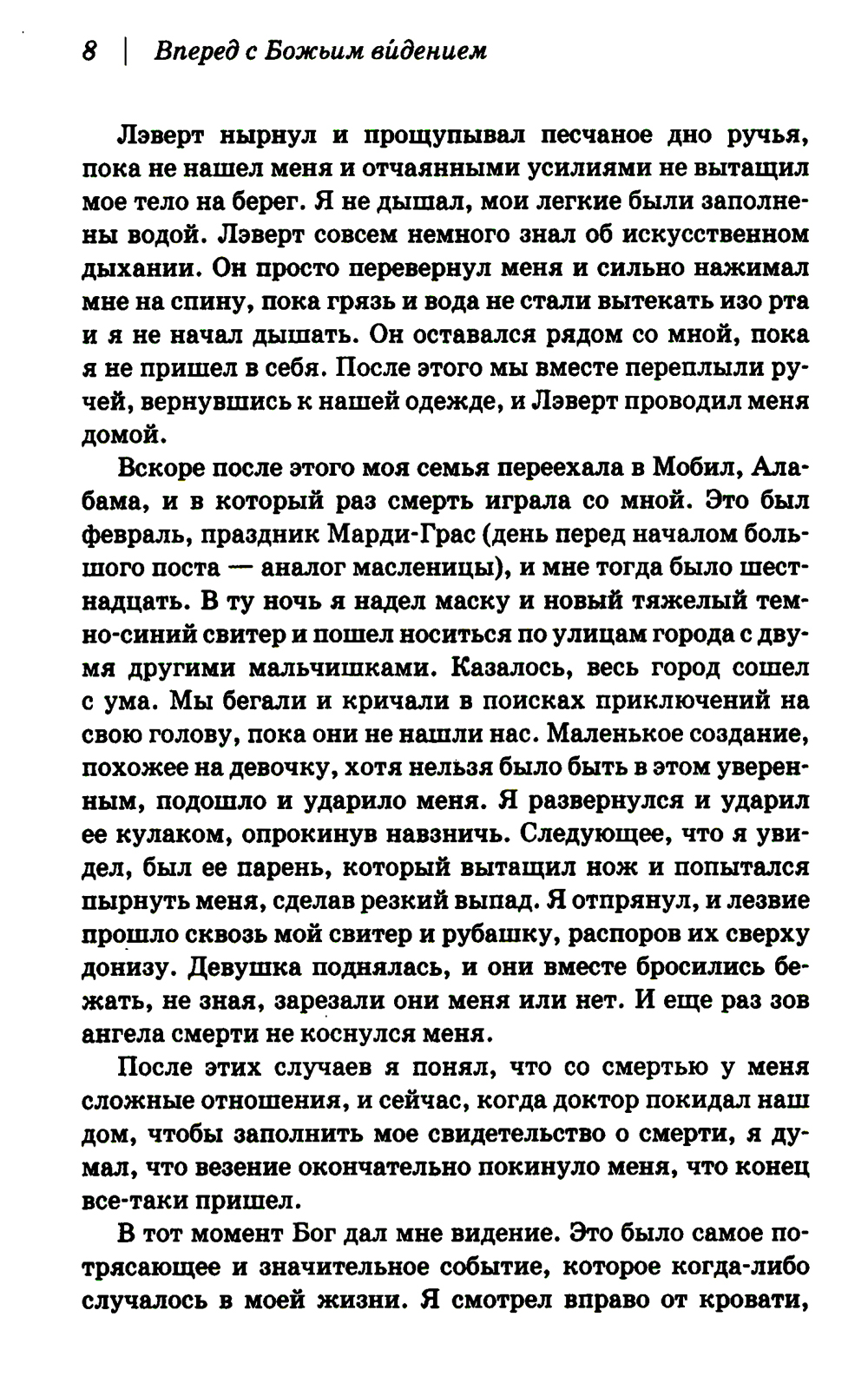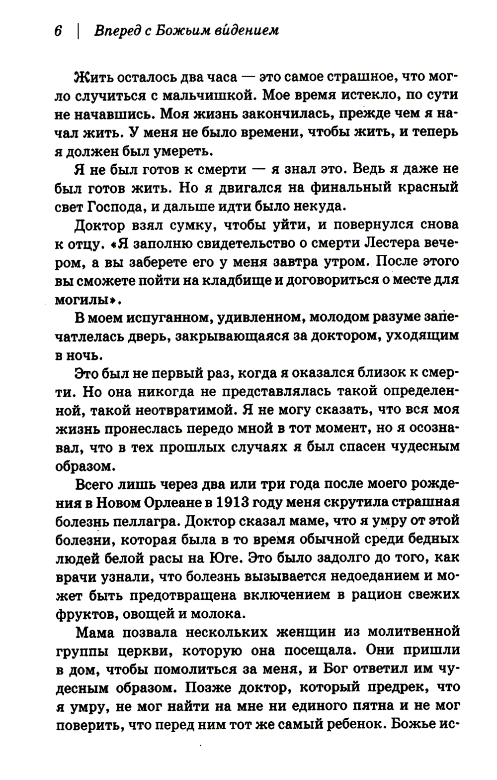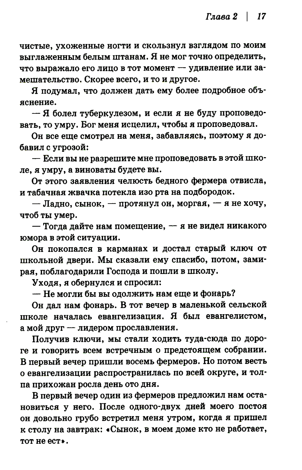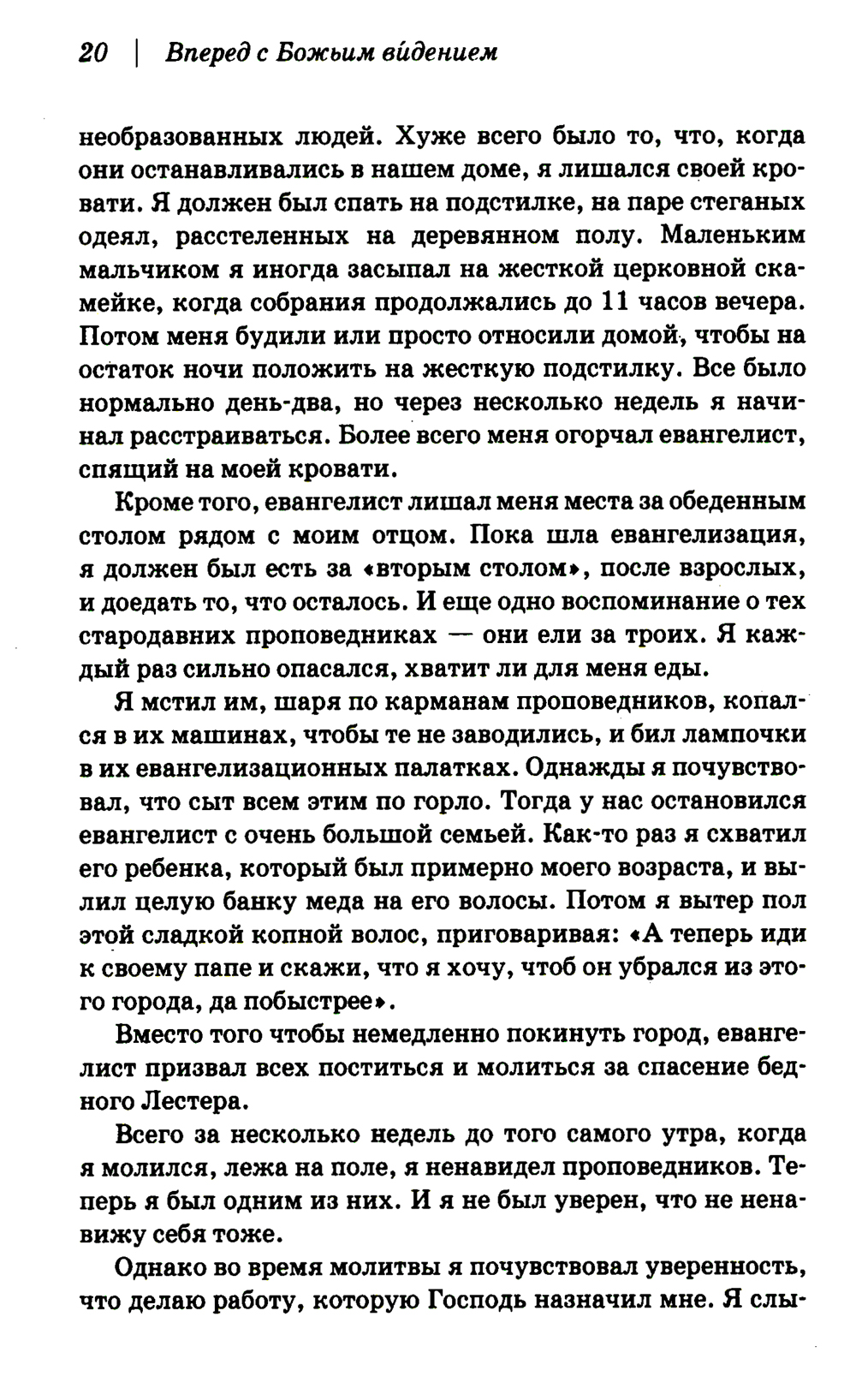 Англия, Франция, Иерусалим, Австралия, Манила, Гонконг, Саут-Бенд, штат Индиана... Преданный, целеустремленный и неутомимый Лестер Самралл принял близко к сердцу призыв Господа «идти по всему миру и проповедовать Евангелие всей твари». В возрасте семнадцати лет Лестеру пришлось выбирать между смертью и служением Богу. И он выбрал проповедь Евангелия, после чего вся его жизнь стала приключением, которое превосходит любое самое пылкое воображение. «Вперед с Божьим видением» это история жизни известного всему миру проповедника, посвятившего себя служению человечеству. Его Бог любит всех людей, в какой бы стране они ни проживали Лестер Самралл любил говорить: «Когда вы питаете веру, ваши сомнения начинают испытывать голод». Эта книга тоже станет хорошим питанием для вашей веры.| Издательство | Библейский взгляд |