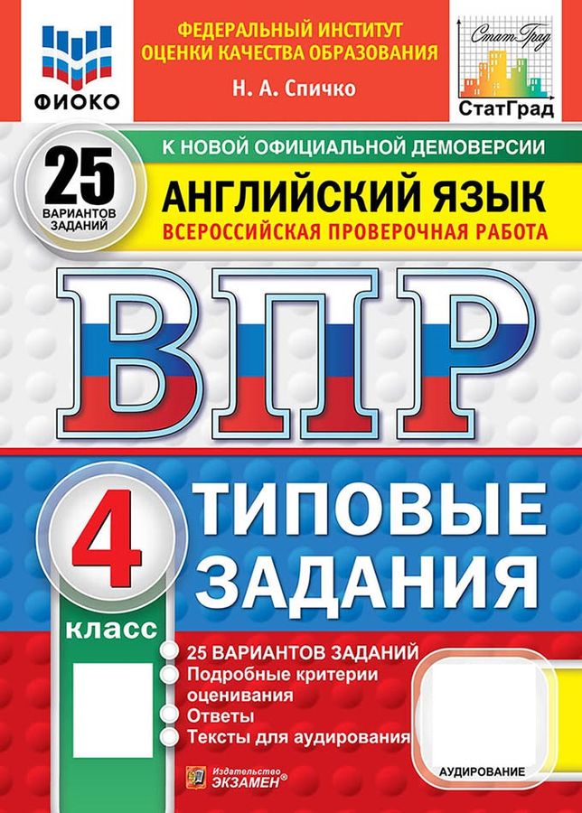 ВПР. ФИОКО. СТАТГРАД. АНГЛИЙСКИЙ ЯЗЫК. 4 КЛАСС. 25 ВАРИАНТОВ. ТЗ. ФГОС НОВЫЙ + АУДИРОВАНИЕ
