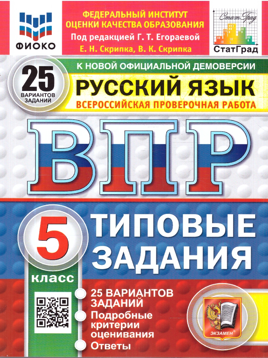 ВПР. ФИОКО. СТАТГРАД. РУССКИЙ ЯЗЫК. 5 КЛАСС. 25 ВАРИАНТОВ. ТЗ. ФГОС НОВЫЙ