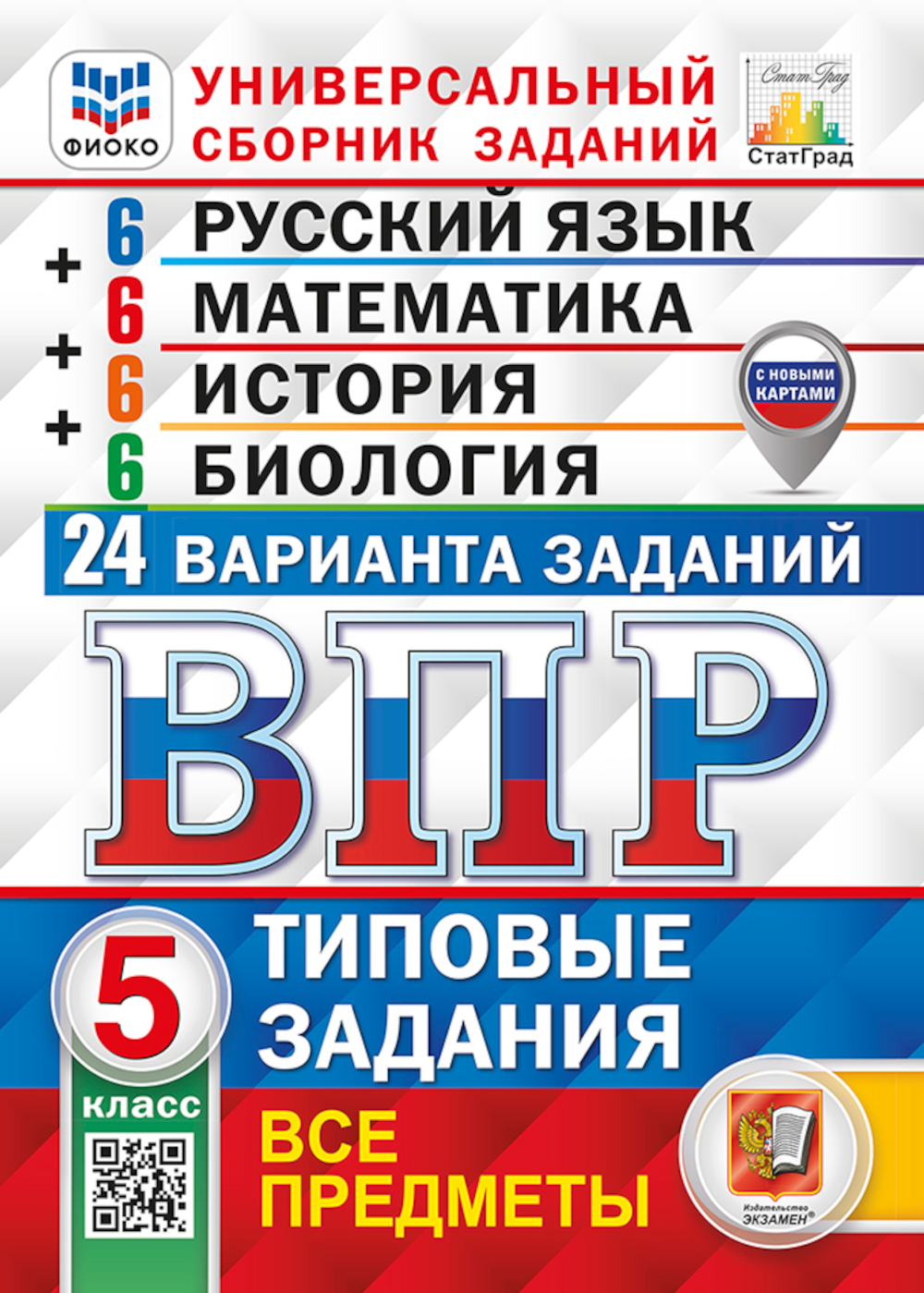 Аннотация: ВПР. Универсальный сборник заданий. Русский язык. Математика. История. Биология. 5 кл. 24 варианта. Типовые задания. ФГОС новый