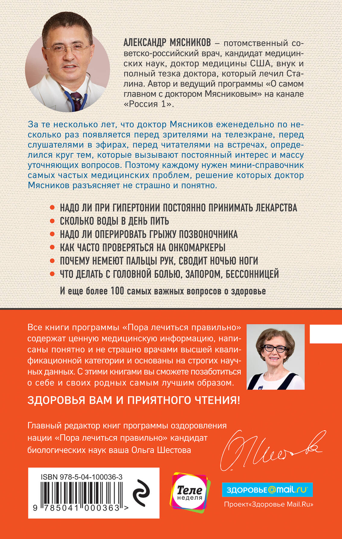 За те несколько лет, что доктор Мясников еженедельно по несколько раз появляется перед читателями на телеэкране, прочно определился круг тем, которые вызывают постоянный интерес и массу вопросов, сколько бы времени доктор этому не уделял! Это: "что бы такого съесть, чтобы похудеть?", "как оставаться молодым и красивым?", "как не заболеть?", "а если заболел, то что делать?". Причем практически все это так или иначе описывалось в его многочисленных предыдущих книгах. Поэтому здесь автор говорит в формате именно телепередачи - коротко, доступно, без теоретических выкладок, так, чтобы чтение этой книги напоминало именно живое общение между доктором и пациентом!| Издательство | ООО "Издательство "Эксмо" |