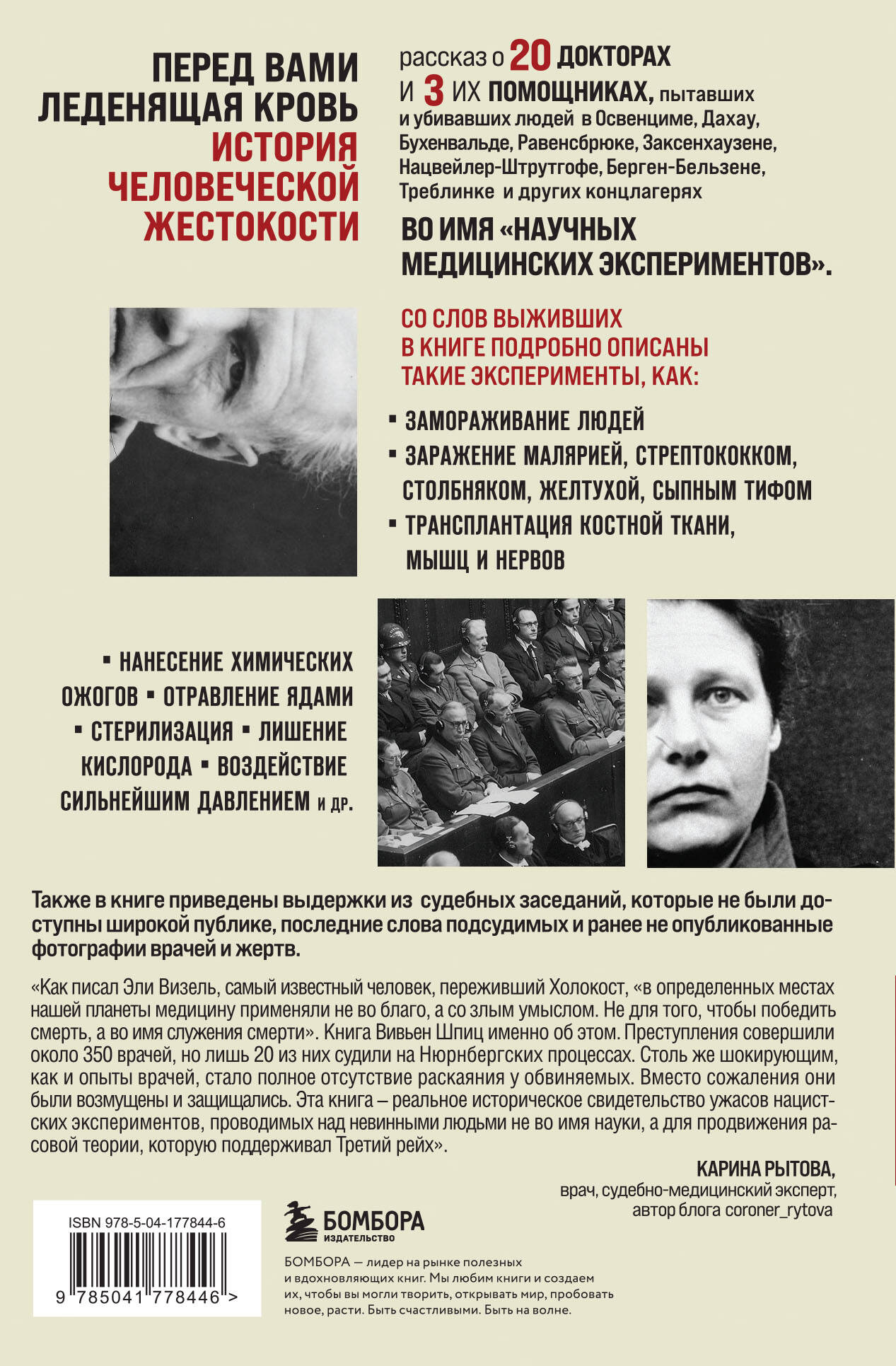 Будучи судебной стенографисткой на Нюрнбергском процессе с 1946 по 1947 год, Вивьен Шпиц стала одной из первых, кто узнал о зверствах, совершенных в нацистской Германии. Нюрнбергский процесс по военным преступлениям был первым международным уголовным процессом в истории. Эта книга - рассказ о двадцати врачах и трех их помощниках, пытавших и убивавших людей во имя научных медицинских экспериментов. Со слов выживших, в книге подробно описаны такие эксперименты, как: лишение кислорода; замораживание; введение инъекций малярии, тифа и желтухи; ампутация здоровых конечностей; отравление ядами и газом, а также другие ужасающие деяния. Каждая глава посвящена одному эксперименту, содержит стенограммы судебных заседаний, которые не были доступны широкой публике, и ранее не опубликованные фотографии преступников и их жертв.| Издательство | ООО "Издательство "Эксмо" |