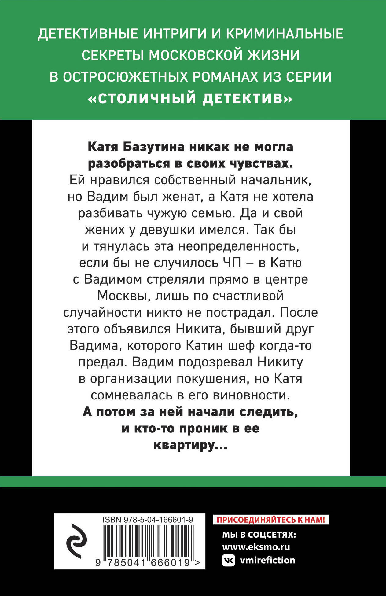 Катя Базутина никак не могла разобраться в своих чувствах. Ей нравился собственный начальник, но Вадим был женат, а Катя не хотела разбивать чужую семью. Да и свой жених у девушки имелся. Так бы и тянулась эта неопределенность, если бы не случилось ЧП - в Катю с Вадимом стреляли прямо в центре Москвы, лишь по счастливой случайности никто не пострадал. После этого объявился Никита, бывший друг Вадима, которого Катин шеф когда-то предал. Вадим подозревал Никиту в организации покушения, но Катя сомневалась в его виновности. А потом за ней начали следить, и кто-то проник в ее квартиру... Татьяна Устинова рекомендует: «Удивительно, но в книгах Евгении Горской угадывается настроение больших русских романов. Она умещает в детектив современную энциклопедию разнообразнейших губительных страстей, созидательных любовей и ярких, живых, разноголосых героев. Получается не только интересно и зажигательно, но еще и очень по-настоящему - ровно настолько, чтобы захотелось поверить в эту историю. Горская ловко и умеючи держит читателя в напряжении: тебе иногда страшно, иногда смешно, иногда будто бы совсем безнадежно, но в конечном итоге понимаешь: все будет хорошо!»| Издательство | Эксмо |