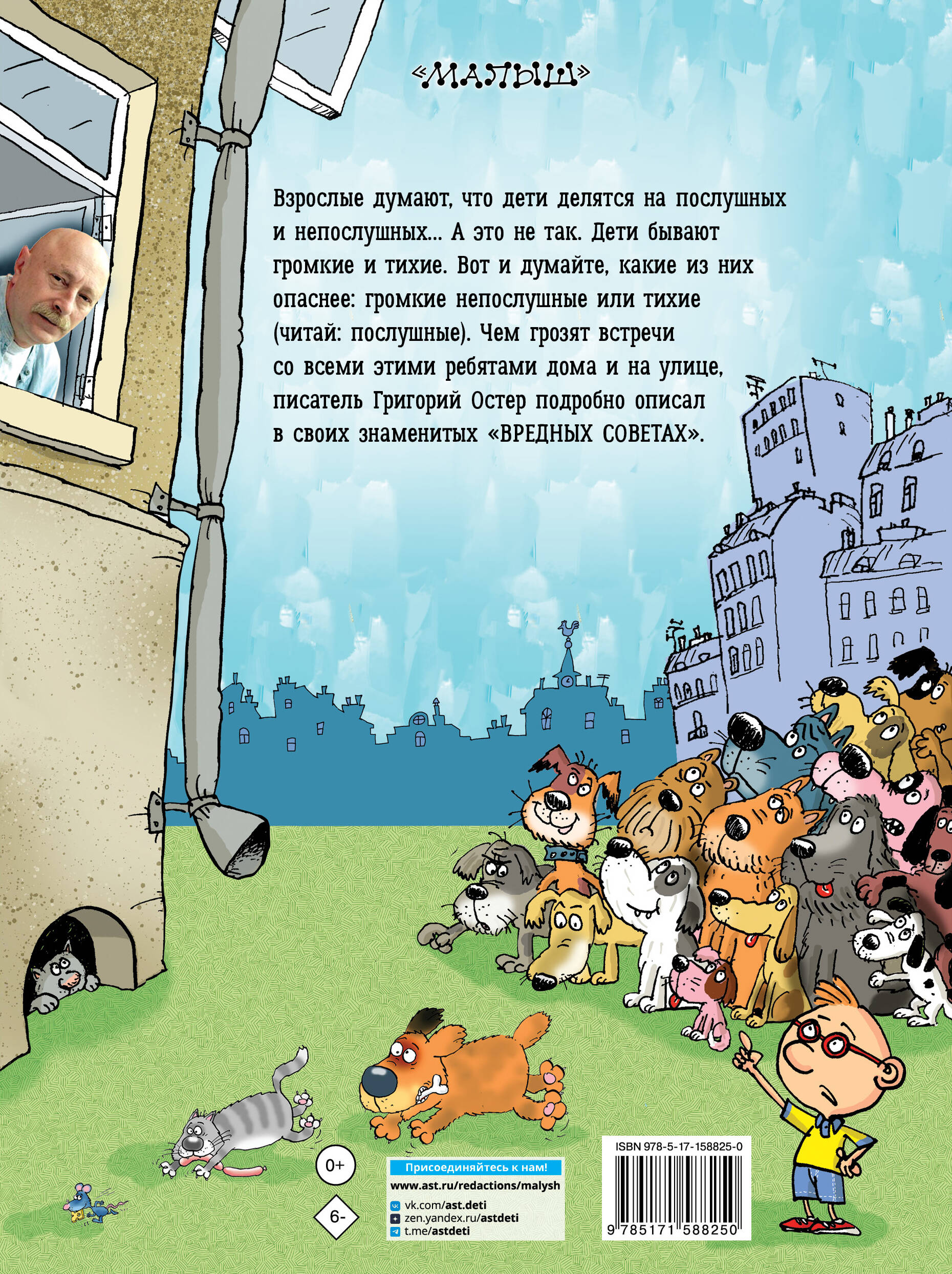 Взрослые думают, что дети делятся на послушных и непослушных… А это не так. Дети бывают громкие и тихие. Вот и думайте, какие из них опаснее: громкие непослушные или тихие (читай: послушные). Чем грозят встречи со всеми этими ребятами дома и на улице, писатель Григорий Остер подробно описал в своих знаменитых «ВРЕДНЫХ СОВЕТАХ».| Издательство | ИЗДАТЕЛЬСТВО "АСТ" |