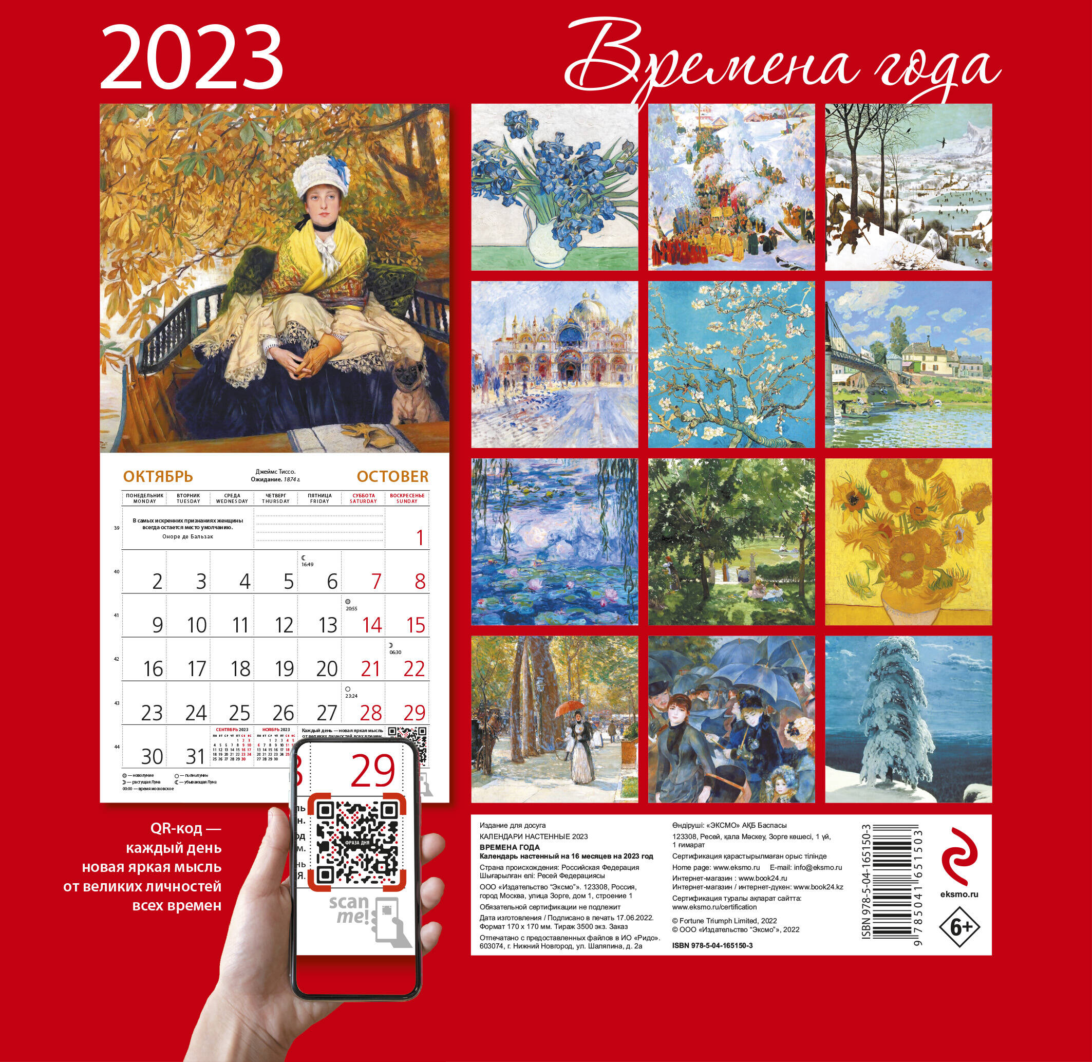 О серии Наши настенные календари отличаются высоким качеством исполнения! Тщательно подобранные иллюстрации, напечатанные на глянцевой бумаге высочайшего качества, станут настоящим украшением дома, а в календарной сетке найдется место для ваших планов: большие клетки позволят делать записи и организовать свой год! В календаре также отмечены государственные праздники. В серии настенных календарей издательства «ЭКСМО» каждый найдет тему по вкусу: великие художники, великолепные подборки с самыми знаменитыми произведениями искусства, герои всеми любимых мультфильмов. О календаре Практичный и эстетичный, этот календарь каждый месяц будет радовать вас изображением нового шедевра. Прекрасные картины органично дополнят любой интерьер и помогут планировать время. В этом календаре представлены шедевры, каждый из которых воплощает самую яркую сторону календарного сезона. Для кого Высокое качество полиграфического исполнения прекрасно дополняет репродукции шедевров живописи, что непременно будет по достоинству оценено людьми с хорошим вкусом. Технические параметры: Тип календаря - настенный перекидной Год - 2023 Календарная сетка - с разбивкой по месяцам Вид скрепления - скрепка Ширина - 17 см Высота - 17 см Внутренний блок - мелованная бумага 150 г/м2 Подложка - плотный гофрокартон для поддержания формы Индивидуальная упаковка в плотный целлофановый пакет| Издательство | Эксмо |