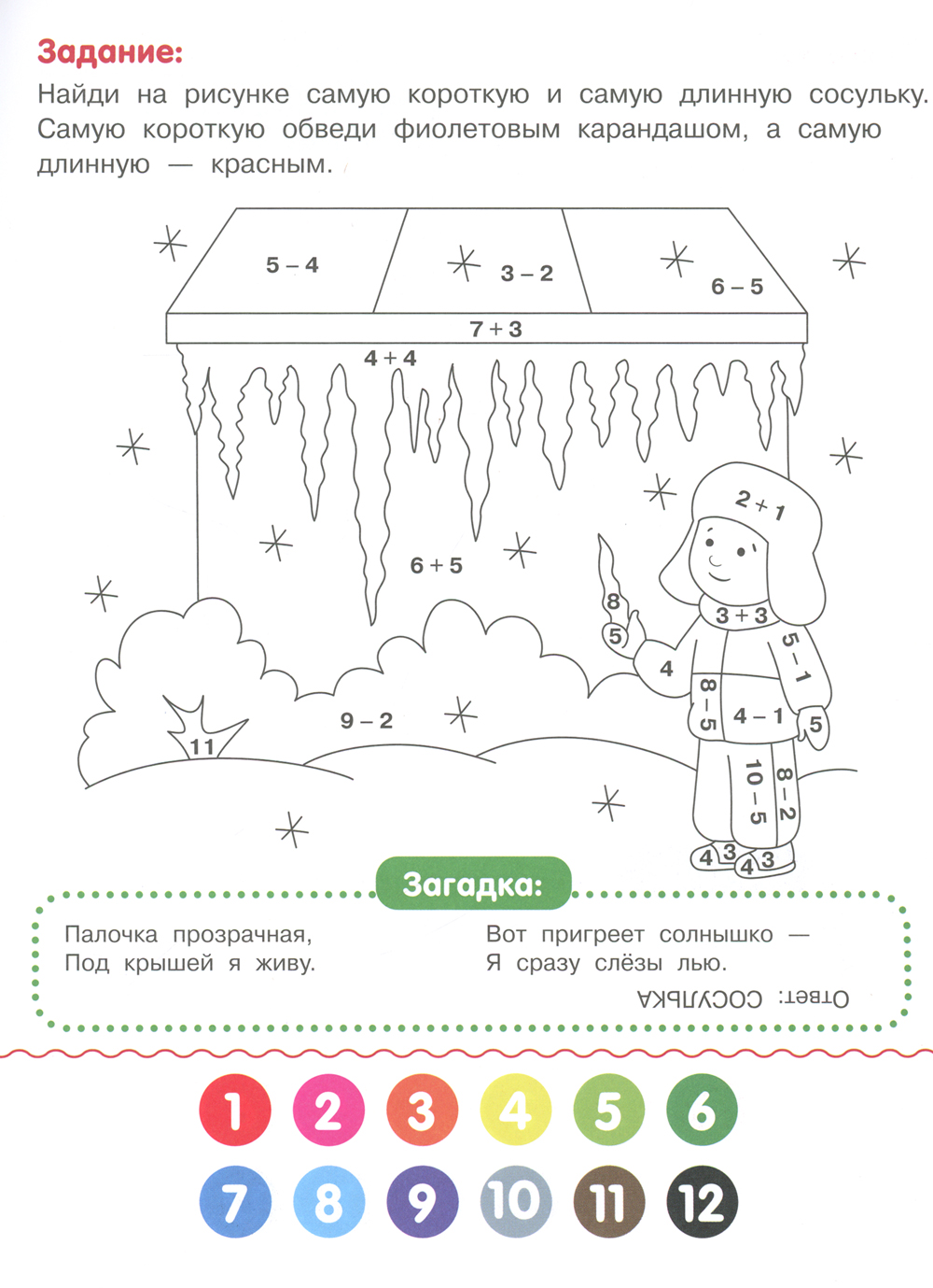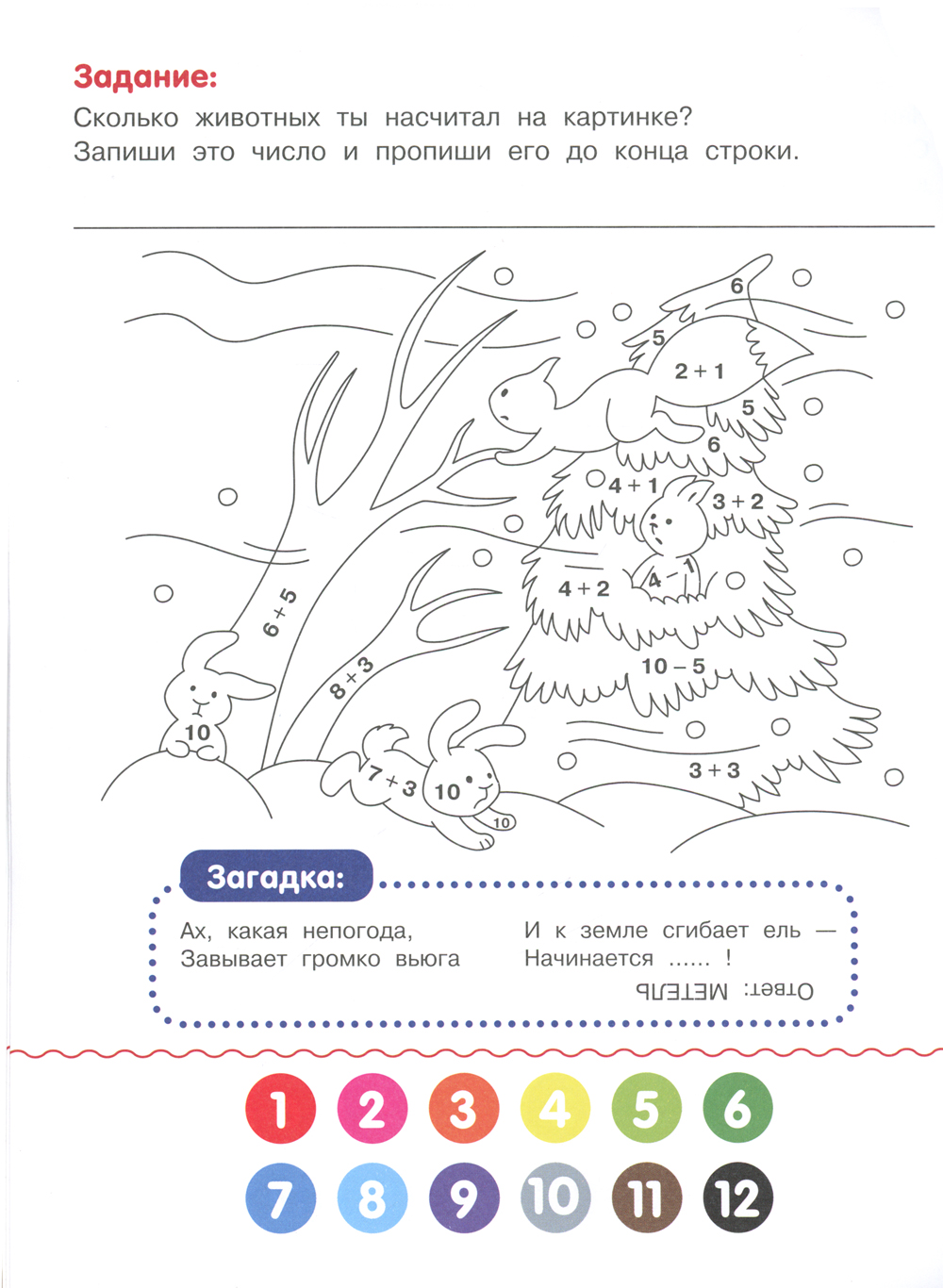 Умные раскраски с примерами помогут ребёнку весело и с пользой провести время, в игровой форме развивая у него внимание и память. Весёлые задания направлены на стимуляцию мелкой моторики и мышления, а также помогут закрепить начальные навыки счёта, чтения и письма. Решив простой пример, ребёнок запомнит цифры и цвета, а авторские загадки и стихи с договариванием на каждой странице, сопровождаемые ответами, прекрасно подойдут для первого самостоятельного чтения.| Издательство | Феникс |