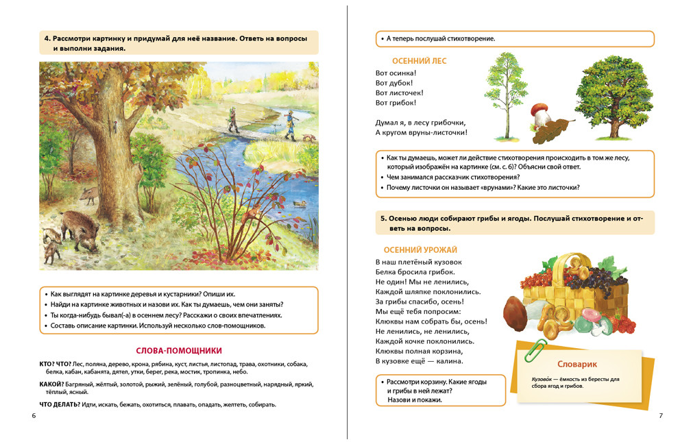 Предлагаемое пособие "Осень" - четвёртая книга комплекта "Времена года. Дидактический материал в стихах, картинках, заданиях, вопросах". В комплект также вошли книги "Зима", "Весна", "Лето". Содержание книг соответствует трём образовательным областям по ФГОС ДО: "Художественно-эстетическое развитие", "Речевое развитие", "Познавательное развитие". Занятия по книгам предполагают активную работу со стихотворным и изобразительным материалом. Выполняя задания, дошкольник учится воспринимать произведения словесного искусства на слух, анализировать на элементарном уровне художественные образы, определять простые выразительные средства языка, составлять небольшие рассказы. С точки зрения познавательного развития, у ребёнка закрепляются знания о временах года и месяцах, признаках и природных явлениях, соответствующих каждому сезону.