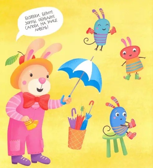 Текст за бузайца читает взрослый, за бузявок - ребёнок. Реплики бузявок написаны короткими словами с преимущественно закрытыми слогами, которые в начале обучения чтению даются ребёнку легче. Простые слова, короткие предложения - и у малыша появляется уверенность, что он справляется. А это уже половина успеха! Подсказывайте ребёнку, если ему трудно. Но не опережайте его. Давайте возможность справиться самостоятельно. Меняйте голоса и интонации: пищите, читайте басом, растягивайте слова. Играйте, делайте выразительные движения! Здесь - ваш личный театр!