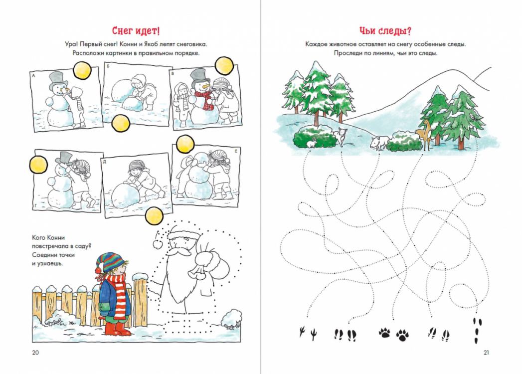Давайте потренируемся различать времена года! Вместе с Конни малыш узнает, кто впадает в спячку, а кто улетает в теплые края; вспомнит, какие праздники мы отмечаем зимой, а какие весной, и придумает себе интересные занятия для летних каникул. Бонус - игра «Домино», которую ребенок сможет самостоятельно раскрасить, вырезать и играть с друзьями.