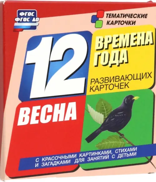 В набор входит комплект из 12 карточек; на лицевой стороне карточки - сюжетная картинка с изображением изменений в неживой и живой природе весной; на обороте - стихотворение, загадка, текст информативного характера, доступные для детского восприятия. Познакомившись с содержанием стихотворений, загадок, текстов, ребенок-почемучка найдет ответы на многие вопросы: какие изменения в жизни растений и животных происходят с наступлением весны? Какие природные явления можно наблюдать весной? Какая бывает погода весной? Что такое ледоход и половодье? Как люди встречают птиц - вестников весны? Как изменился труд людей весной?