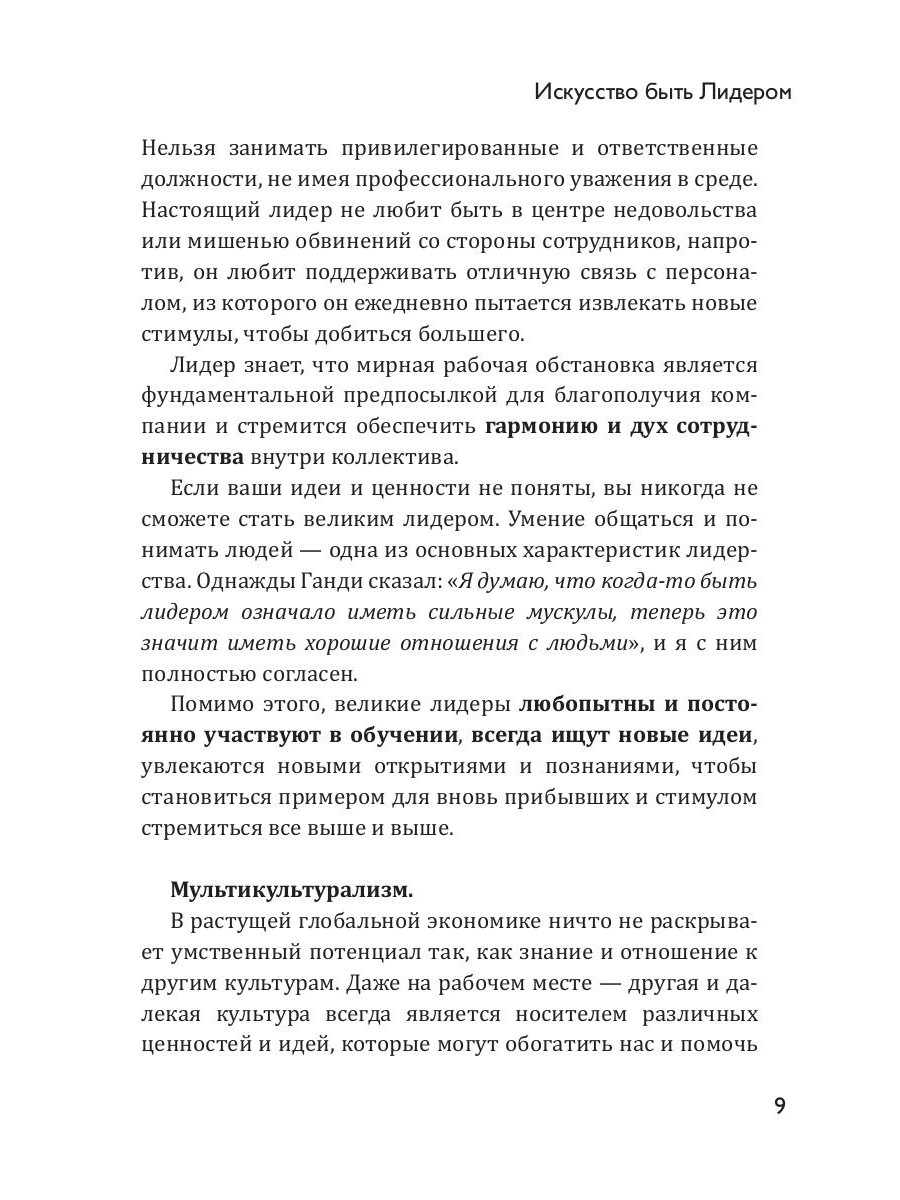 Книга направлена на развитие лидерских качеств, основной ее задачей является ознакомление с современной концепцией лидерства, подготовка к разработке собственной программы развития качеств и компетенций современного лидера. В книге рассматриваются навыки, необходимые каждому руководителю, независимо от того, на каком уровне управления он находится и иметь представление об основных теориях лидерства, их достоинствах и ограничениях; уметь выбирать стиль лидерства, адекватный задаче и ситуации. Читатель получит представление о процессах межличностной коммуникации, познакомится с содержанием коммуникационных стилей, научится использовать в работе эффективные коммуникативные навыки. В книге рассказывается о способах диагностики и оценки эмоционального интеллекта и способах управления им. Читатель узнает о способностях человека оказывать исключительное влияние на других, познакомится с искусством нравиться окружающим.| Издательство | Т8 RUGRAM |