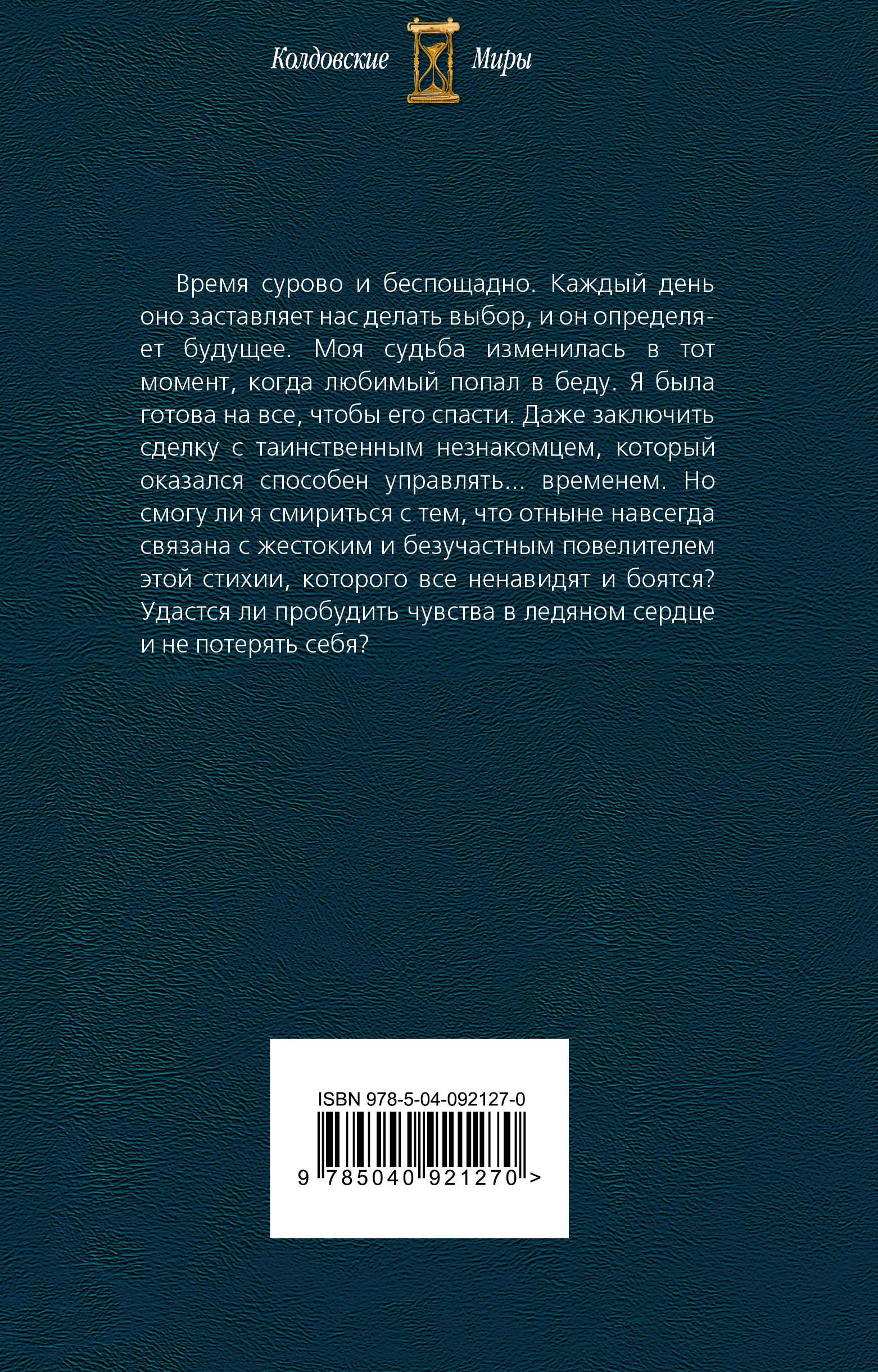 Время сурово и беспощадно. Каждый день оно заставляет нас делать выбор, и он определяет будущее. Моя судьба изменилась в тот момент, когда любимый попал в беду. Я была готова на все, чтобы его спасти. Даже заключить сделку с таинственным незнакомцем, который оказался способен управлять… временем. Но смогу ли я смириться с тем, что отныне навсегда связана с жестоким и безучастным повелителем этой стихии, которого все ненавидят и боятся? Удастся ли пробудить чувства в ледяном сердце и не потерять себя?| Издательство | ООО "Издательство "Эксмо" |