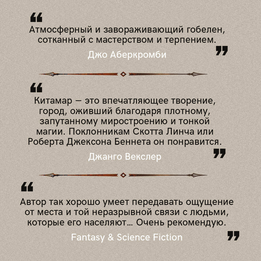 Время пепла ― первая книга фэнтезийной трилогии о городе Китамар и его обитателях от одного из авторов монументальной космической оперы «Пространство». Китамар ― центр торговли и богатства, древний город с долгой и кровавой историей. В кольце его стен живут бесчисленные тысячи людей и разворачиваются их истории. Это - история Алис. Когда убивают ее брата, мелкая воровка из округа Долгогорье решает выяснить, кто и почему это сделал. Но чем больше она узнает о преступнике, тем больше правды открывается о ней самой, и эти тайны оказываются опаснее ножа. Втянутая в интригу столь же глубокую, как корни Китамара, где секреты низкорожденных могут свергать владык, Алис выберет для себя историю, способную изменить все прочие. Дэниел Абрахам, один из соавторов фантастического цикла «Пространство», написанного под псевдонимом Джеймс Кори, и лауреат премии «Хьюго», представляет первую книгу новой трилогии ― эпического фэнтези, действие которой разворачивается в стенах великого города Китамар в течение одного бурного года. И каждая история имеет значение, а судьба самого города состоит из них всех. «Атмосферный и завораживающий гобелен, сотканный с мастерством и терпением». ― Джо Аберкромби «Премьера выдающейся серии, которая мгновенно захватит читателей своими тайнами, и они будут с нетерпением ждать продолжения». ― Publishers Weekly «Автор так хорошо умеет передавать ощущение от места и той неразрывной связи с людьми, которые его населяют… Очень рекомендую». ― Fantasy & Science Fiction «Эта новинка обладает всеми признаками великой работы». ― Kirkus «Китамар ― это впечатляющее творение, город, оживший благодаря плотному, запутанному миростроению и тонкой магии. Поклонникам Скотта Линча или Роберта Джексона Беннета он понравится». ― Джанго Векслер Писатель строит свой мир с тем уверенным мастерством, который и ожидаешь от автора с таким писательским бэкграундом. Китамар находится в руках профессионала.| Издательство | ООО "Издательство "Эксмо" |