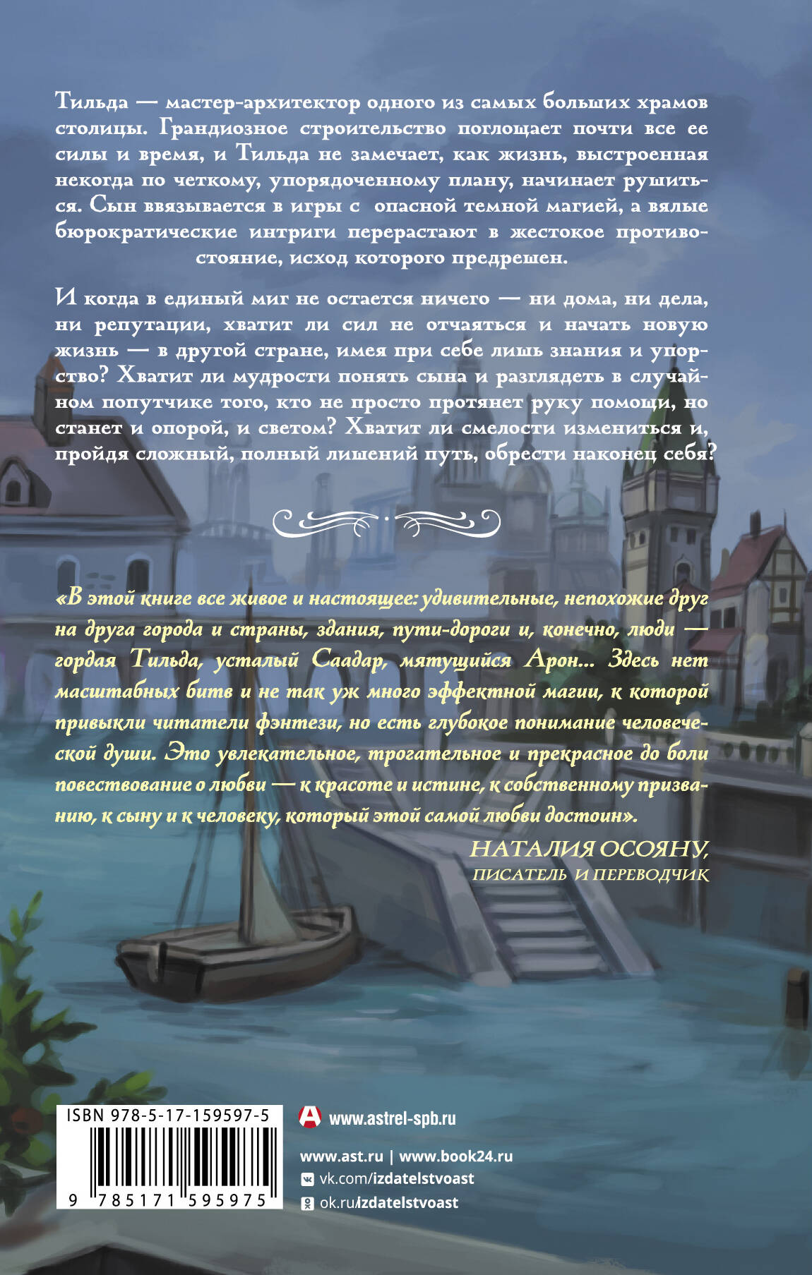 Тильда - мастер-архитектор одного из самых больших храмов столицы. Грандиозное строительство поглощает почти все ее силы и время, и Тильда не замечает, как жизнь, выстроенная некогда по четкому, упорядоченному плану, начинает рушиться. Сын ввязывается в игры с опасной темной магией, а вялые бюрократические интриги перерастают в жестокое противостояние, исход которого предрешен. И когда в единый миг не остается ничего - ни дома, ни дела, ни репутации,- хватит ли сил не отчаяться и начать новую жизнь в другой стране, имея при себе лишь знания и упорство? Хватит ли мудрости понять сына и разглядеть в случайном попутчике того, кто не просто протянет руку помощи, но станет и опорой, и светом? Хватит ли смелости измениться и, пройдя сложный, полный лишений путь, обрести наконец себя?| Издательство | Издательство "АСТ" |