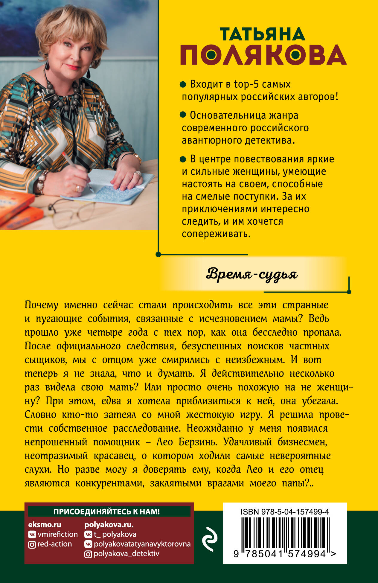 Почему именно сейчас стали происходить все эти странные и пугающие события, связанные с исчезновением мамы? Ведь прошло уже четыре года с тех пор, как она бесследно пропала. После официального следствия, безуспешных поисков частных сыщиков, мы с отцом уже смирились с неизбежным. И вот теперь я не знала, что и думать. Я действительно несколько раз видела свою мать? Или просто очень похожую на нее женщину? При этом, едва я хотела приблизиться к ней, она убегала. Словно кто-то затеял со мной жестокую игру. Я решила провести собственное расследование. Неожиданно у меня появился непрошеный помощник - Лео Берзинь. Удачливый бизнесмен, неотразимый красавец, о котором ходили самые невероятные слухи. Но разве могу я доверять ему, когда Лео и его отец являются конкурентами, заклятыми врагами моего папы?.. Татьяна Полякова - один из самых популярных российских писателей в жанре детектива. За время писательской карьеры из-под ее пера вышло более 85 книг общим тиражом более 36 миллионов экземпляров. По свидетельствам читателей, романы Татьяны Поляковой - это «захватывающий сюжет и непредсказуемая развязка, обаятельные герои и невероятные приключения, легкий стиль и яркие диалоги».| Издательство | ООО "Издательство "Эксмо" |
