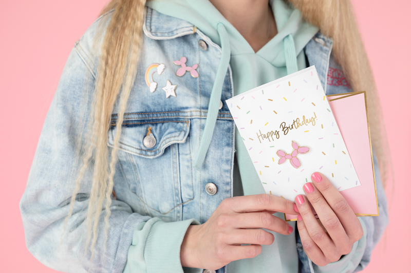 Card with enamel pin Balloon dog, 10.5x14.8cm