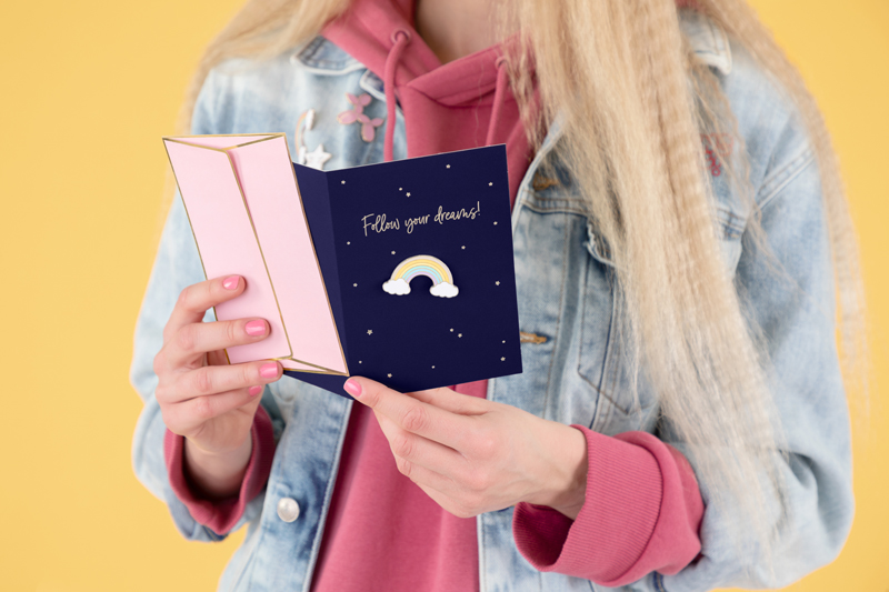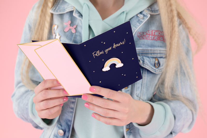 Card with enamel pin Rainbow, 10.5x14.8cm