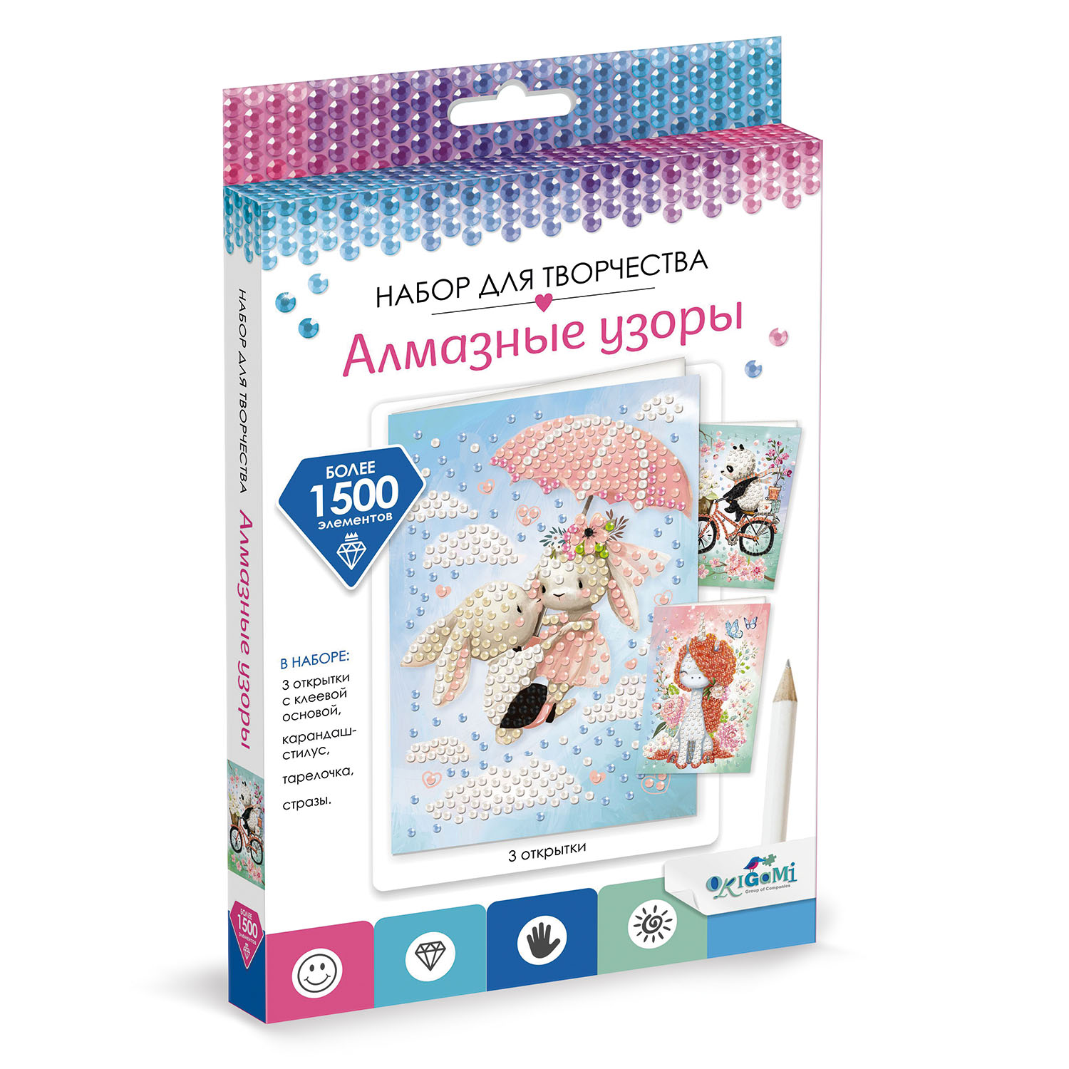 В наборе: 3 открытки с клеевой основой , карандаш-стилус, тарелочка, стразы.