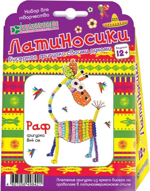Набор «Раф» из серии «Латиносики» разработан для плетения смешной фигурки с полосками из разноцветного бисера в этно-стилистике Латинской Америки.