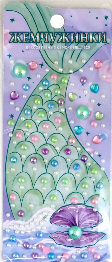 Набор для творчества. Самоклеящиеся жемчужинки. В наборе цветные полукруглые бусины жемчужинки различных перламутровых оттенков, диаметром 10 мм - 12 шт., диаметром 8 мм - 21 шт., диаметром 6 мм - 27 шт. Жемчужинки имеют клеевой слой, размещены на прозрачной подложке.
