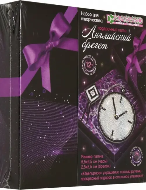 Серия "Подарочный патч" - это актуальное украшение, сделанное своими руками, и готовое решение для индивидуального подарка в стильной упаковке. Создать патч "Английский брегет" ("Breguet" - часовая компания, основанная мастером Бреге) будет интересно как взрослому, так и подростку старше 12 лет, обладающему навыками шитья.