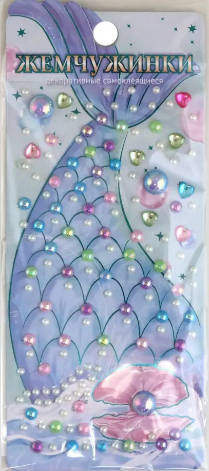 Набор для творчества. Самоклеящиеся жемчужинки. В наборе цветные полукруглые бусины жемчужинки различных перламутровых оттенков, диаметром 10 мм - 12 шт., диаметром 8 мм - 21 шт., диаметром 6 мм - 27 шт. Жемчужинки имеют клеевой слой, размещены на прозрачной подложке.