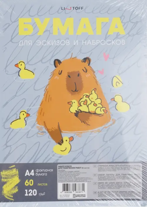 Бумага для графических работ Капибара, 60 листов, А4, серая