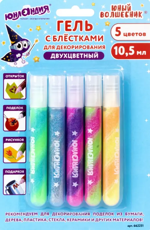 Гель с блестками "Юный волшебник", двухцветный, 5 цветов по 10,5 мл