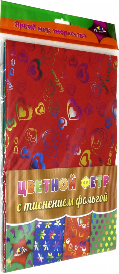 Фетр цветной с тиснением фольгой. Ассорти №4, 4 листа, 4 цвета