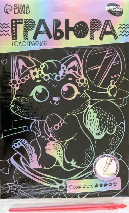 Гравюра Кошечка на пуфике, А5, с металлическим эффектом голография