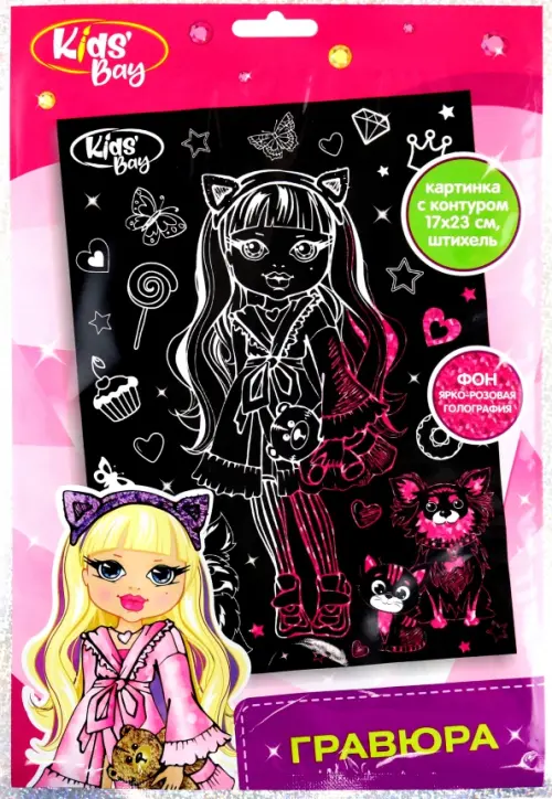 Гравюра - уникальный вид творчества. Под черным слоем напыления скрыт голографичесий цветной слой, который будет проявляться по мере процарапывания картинки по белому контуру.