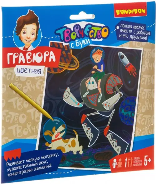 Гравюра - особый вид графического искусства. Сцарапывая верхний слой гравюры специальным штихелем, входящим в набор, ребёнок может самостоятельно создать настоящее произведение искусства и почувствовать себя художником!