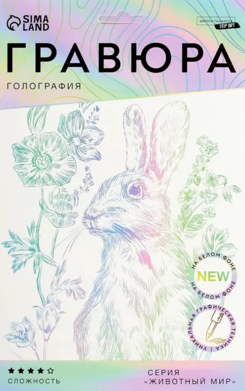 Гравюра представляет собой многослойное панно, покрытое краской, на которое нанесён контур рисунка. С помощью особого скребка (штихеля), который входит в набор, путём процарапывания и создается гравюра. Новая серия с уникальным дизайном порадует вас разнообразием рисунков.