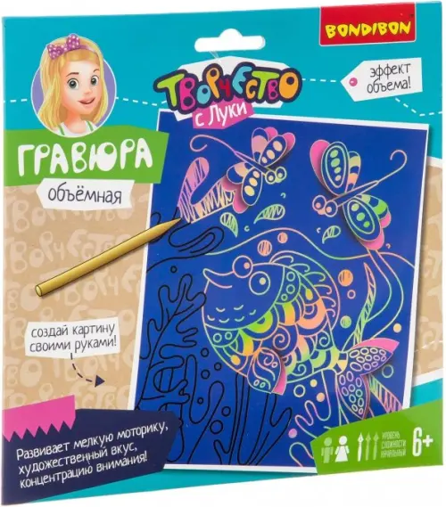 Объемная гравюра - увлекательный вид творчества, развивающий мелкую моторику и художественные навыки. Картина содержит отгибающиеся фрагменты, с помощью которых создается эффект объема. Следуя разметке на основе, снимите гравюрный слой и создайте чудесную картину!