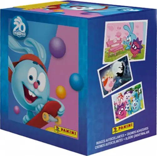 Бокс из 50 пакетиков наклеек коллекции Смешарики 20 лет от Panini. В каждом пакетике 5 случайных наклеек.