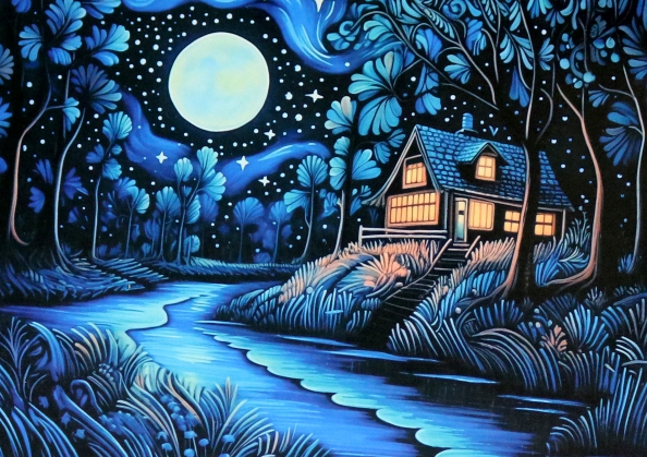 Алмазная мозаика на подрамнике Ночь в лесу, частичная выкладка