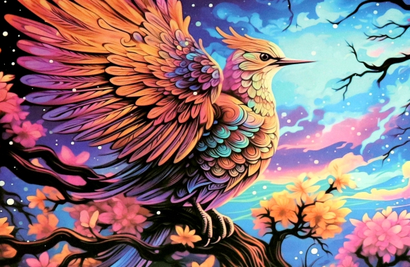 Алмазная мозаика на подрамнике Волшебная птица, частичная выкладка