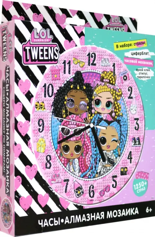Алмазная мозаика Часы это лучший способ научить дочку или младшую сестренку понимать время. Девочка будет очарована разнообразием мерцающих страз, стильным дизайном часов, творческим процессом и сама не заметит, как начнет информировать вас о времени. Алмазная мозаика поможет ребенку научиться сочетать цвета, развить чувство вкуса. Она воспитывает самоконтроль, усидчивость, терпение, концентрацию, внимательность, активизирует мышление и мелкую моторику. Создать часы легко: снимите защитный слой с циферблата, с помощью карандаша-стилуса наносите стразы на клейкую основу согласно номеру и цвету (см. инструкцию). Когда все стразы будут на месте, закрепите стрелки и часовой механизм. Сверкающие оригинальные часы готовы!