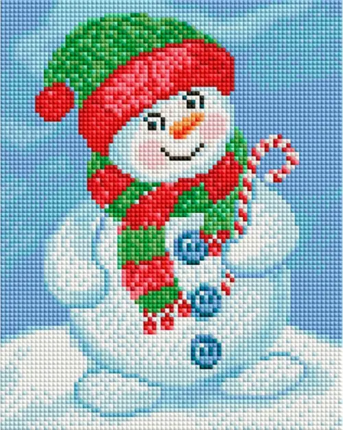 Алмазная мозаика на подрамнике Снеговик в шапочке