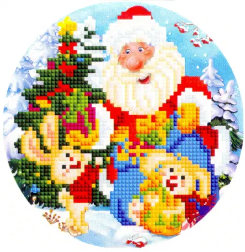 Алмазная мозаика "Получение новогодних подарков", 18 см, 19 цветов