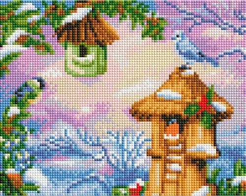 Выложите чудесную зимнюю композицию на холсте в формате 20*25 см.