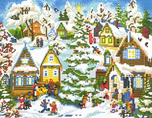Алмазная мозаика, блестящая. Новогодняя суматоха