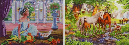 Алмазная раскраска 2 в 1. Лошади в лесу. Милая балерина
