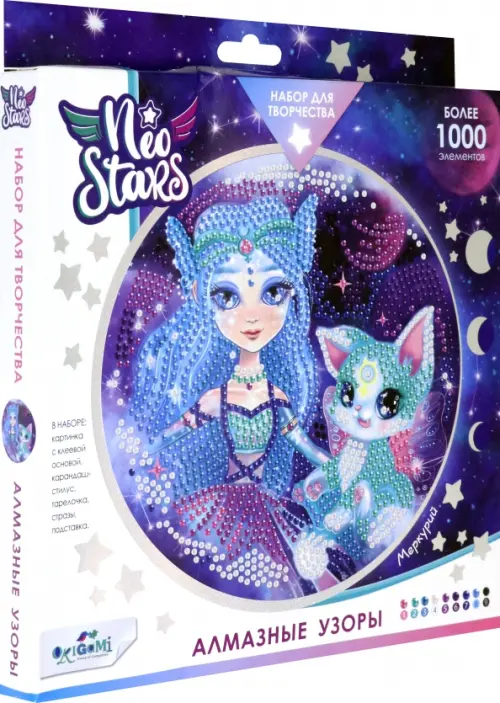 В наборе: картинка с клеевой основой, стразы, карандаш-стилус, тарелочка, подставка.