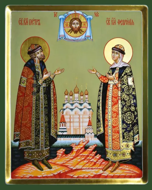Набор для творчества Алмазная мозаика с частичной выкладкой арт. 65619 / 16 ПЁТР И ФЕВРОНИЯ, размер: 40*50 см, (14 цветов страз, холст на подрамнике с напечатанной картиной, покрытый клеевым слоем и защитной пленкой, пакеты со стразами, стилус, лоток для страз, силикон для страз, клей, подвесы для подрамника, пинцет металлический, схема, дополнительные пакеты с zip-молнией, стикеры для нумерации zip-пакетов в комплекте, форма страз: круглая, тип выкладки: частичная, картонная коробка с ручкой)